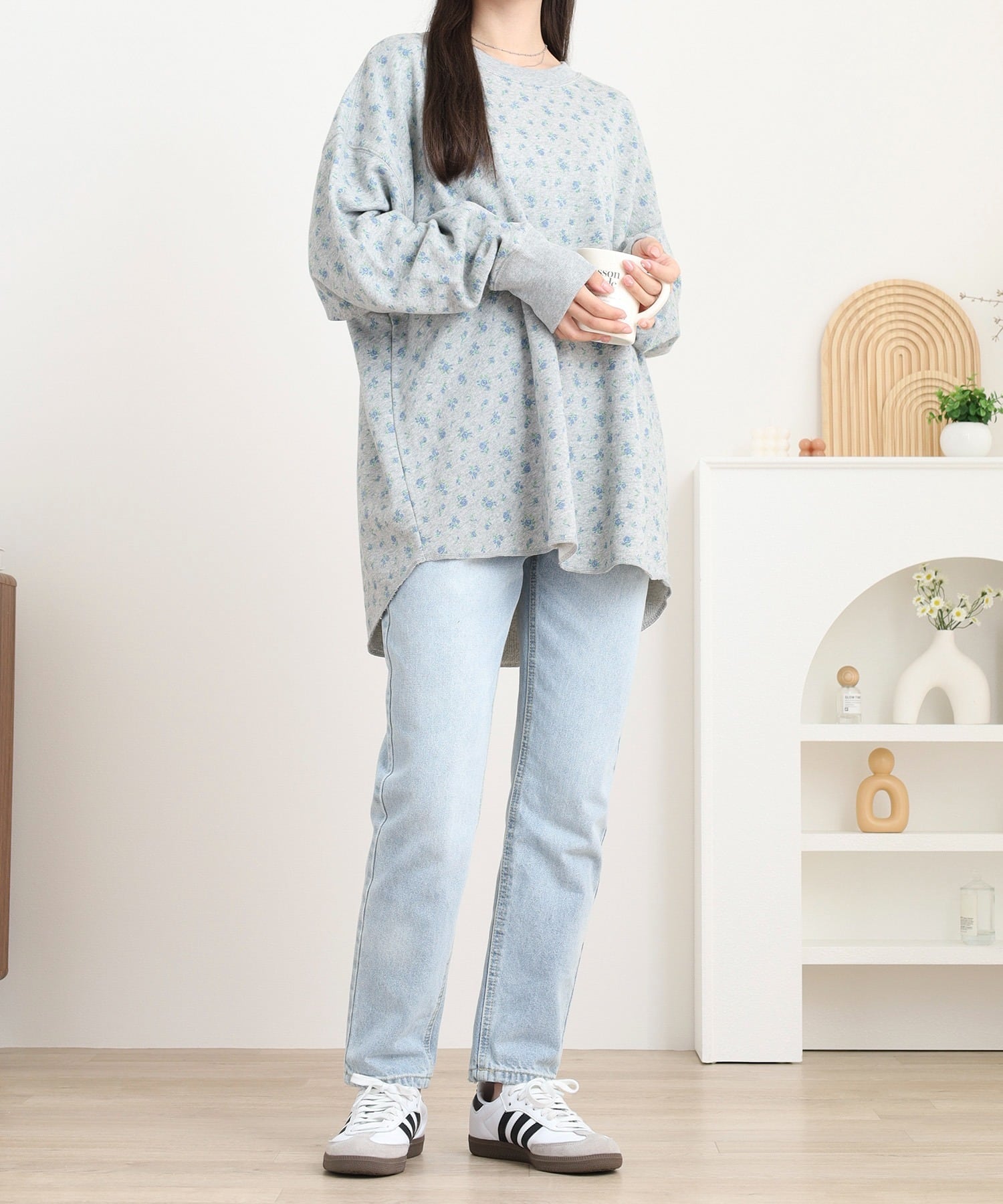 ・裏毛の全面に花柄プリントを施すことでカジュアルな中に華やかさをプラス。