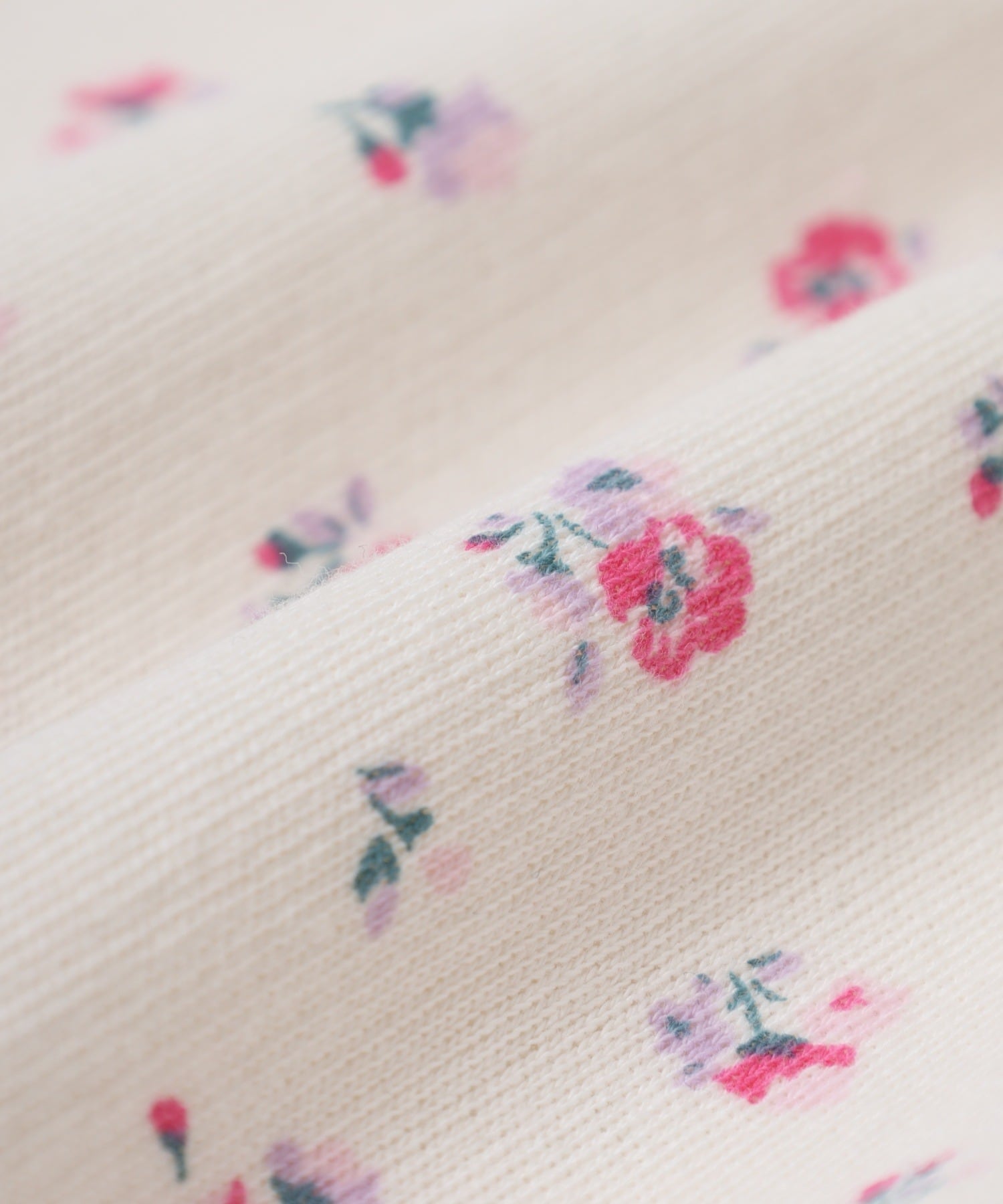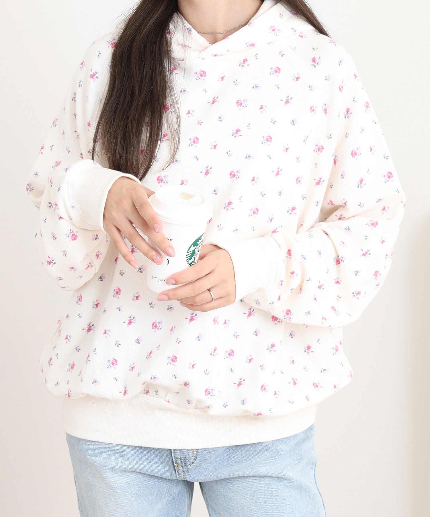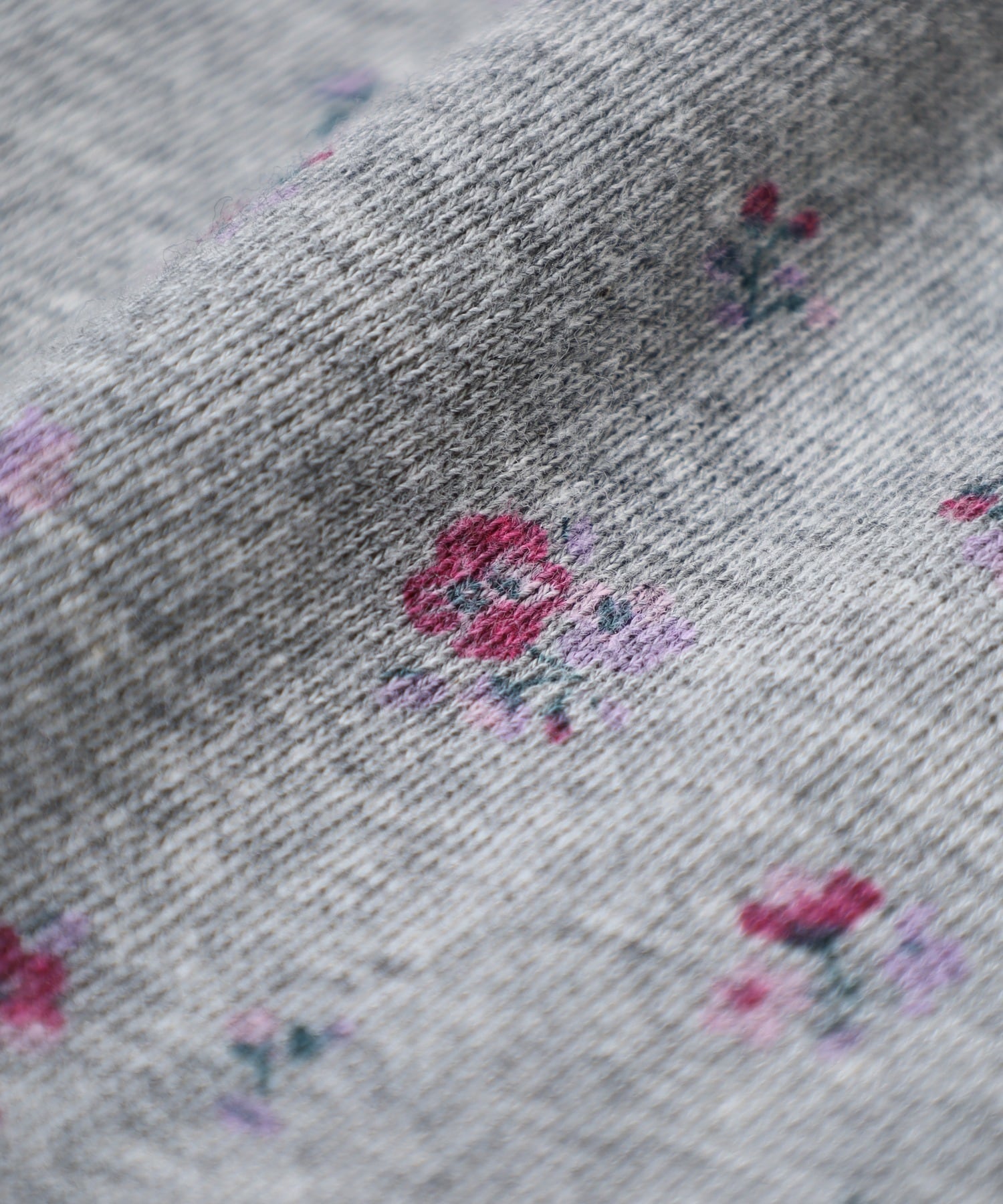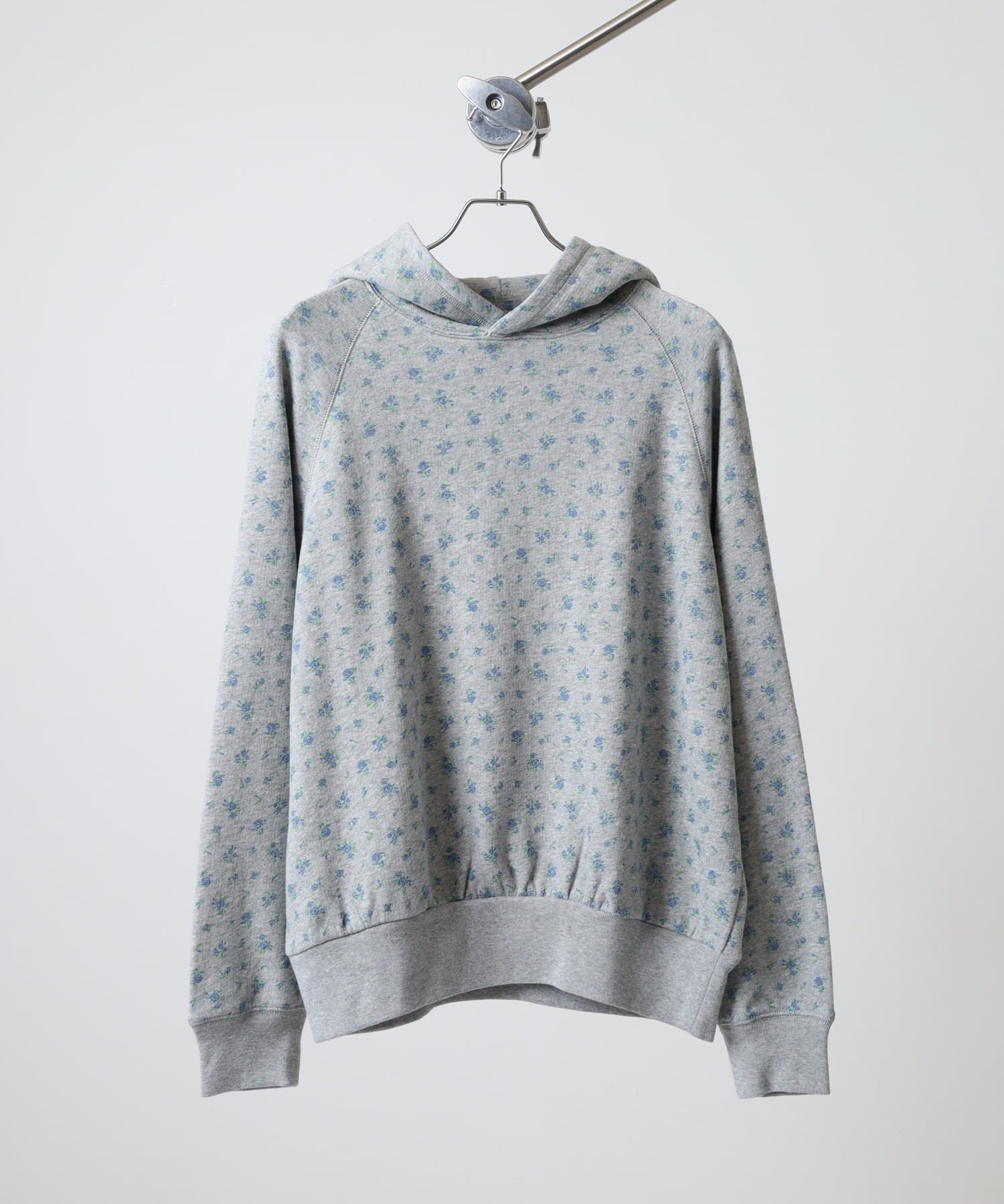 ・裏毛の全面に花柄プリントを施すことでカジュアルな中に華やかさをプラス。