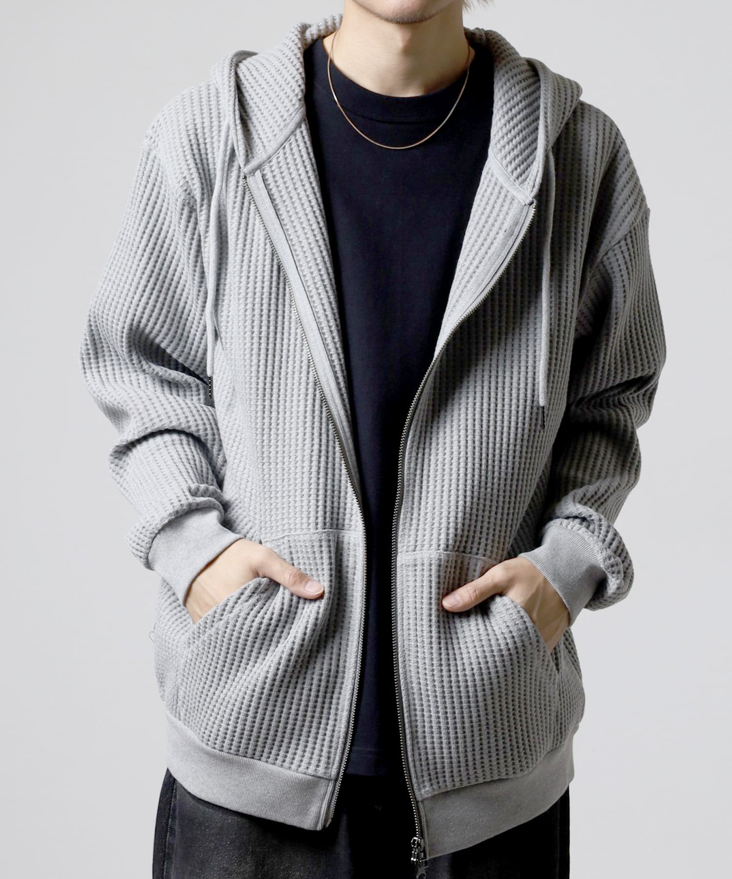 JEMORGANを代表するアイテムのビッグワッフルのフルジップパーカー。
