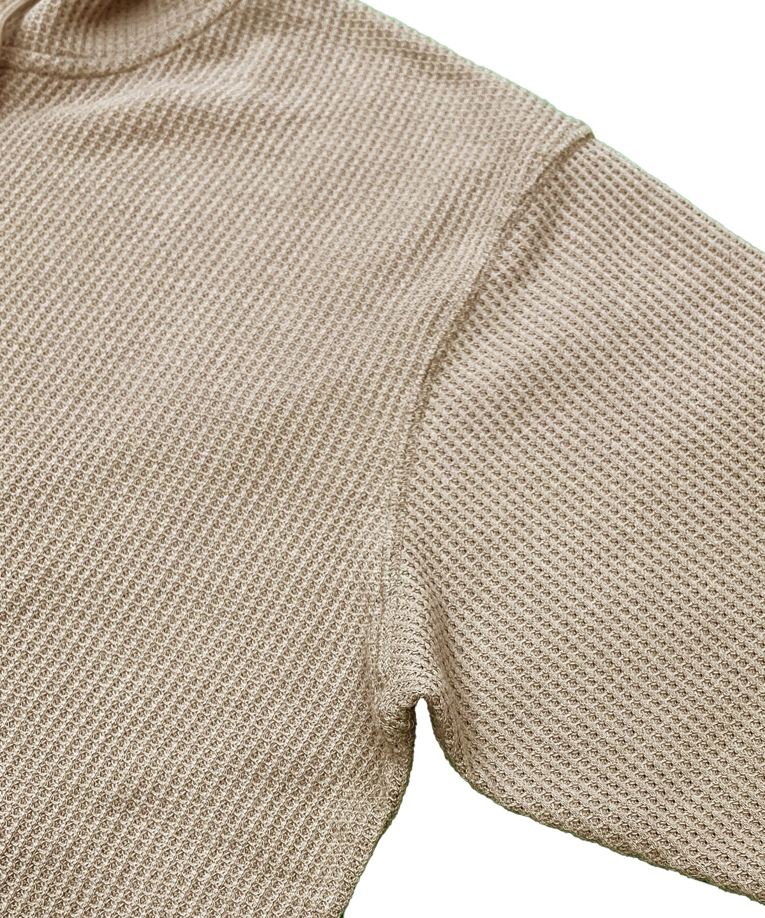 薄手のワッフル素材なのでアウターの中にプラスもう1枚欲しい時や夏の冷房対策などにも便利です。